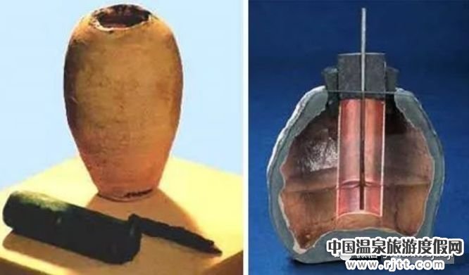 1936年在伊拉克首都巴格达城近郊外一个古代棺木内发现了一个陶器,高15厘米,瓶里装满了沥青。沥青之中埋有一根铜管,直径2.6厘米,铜管内有一层沥青,包着一根铁棒。只要向陶瓶内倒入一些酸或碱性水,便可以发出电来。这意味着,在公元前248就开始使用电池了。